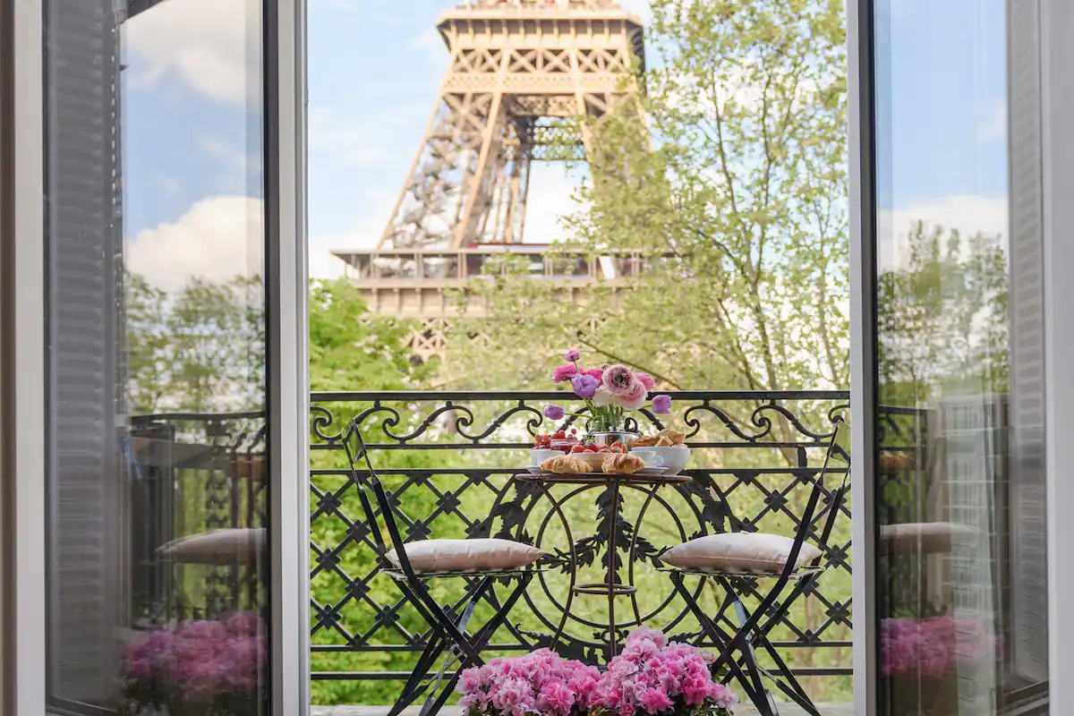 Only a few apartments in Paris feature a spectacular view of the Eiffel from so close that you’ll feel like you can reach out and touch it! Our romantic Viognier apartment offers this unbeatable Paris view, along with a luxurious setting in one of the most sought-after areas in the Left Bank’s 7th arrondissement. The highlight of your day in Paris will be returning home to this spacious two-bedroom, three-bathroom rental that comfortably sleeps up to five people.
